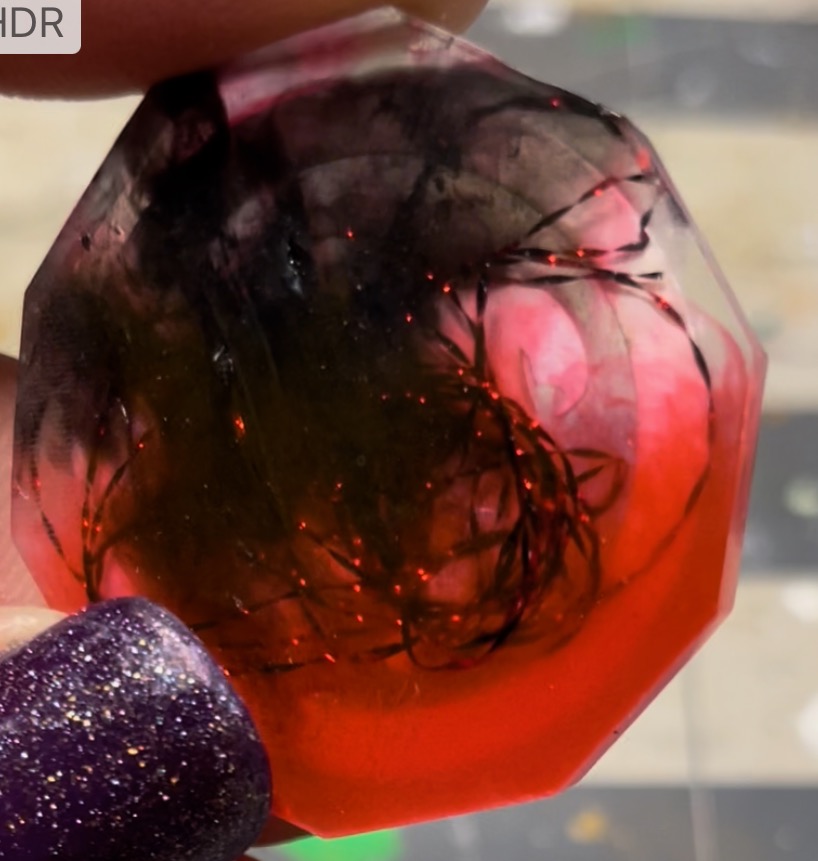 All dice are made with resin. Inclusions= micah powder, alcohol ink, angel hair. Dice are inked in White.